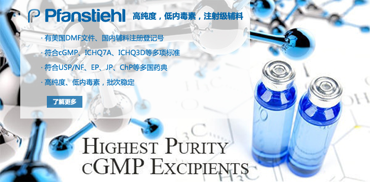 “熱烈祝賀Pfanstiehl的注射級甘氨酸Glycine(G-140)喜獲CDE登記號F20250000403, 這是Pfanstiehl產品獲得的第18個CDE登記號!”甘氨酸在醫藥輔料制劑中應用廣泛,, 可作為緩沖劑,增溶劑,穩定劑等,具有諸多優勢。Pfanstiehl秉承一貫高品質理念,為滿足全球生物制藥行業對于高品質甘氨酸的需求,隆重推出的注射級甘氨酸Glycine (G-140), 具有超高純度,超低內毒素,超低金屬殘留的特點,單獨檢測29種金屬離子,并且新增DNA,RNA,DNA酶,RNA酶和脂肪酶,亞硝酸鹽等多項質量指標的檢測,符合多國藥典規定(USP, EP, BP, JPE, ChP),可用于生物治療性藥物和疫苗的生產。產品信息:· 產品名稱:Glycine, High Purity, Low Endotoxin, Low Metals, USP, EP, BP, JPE, ChP (G-140)· 中文名稱:甘氨酸· 分子式:C2H5NO2· 分子量:75.07 g / mol· CAS號:56-40-6· 產品貨號:G-140產品特點: · 超高純度,超低內毒素,超低微生物含量,超低金屬雜質殘留· 質量指標新增DNA,RNA,DNA酶,RNA酶,脂肪酶和亞硝酸鹽檢測· 符合多國藥典:USP, EP, BP, JPE, ChP· 符合ICH Q3D標準· 符合GMP標準· 已獲DMF和CDE登記號 產品應用:· 緩沖劑· 穩定劑· 增溶劑如果您對Pfanstiehl注射級別Glycine G-140感興趣,歡迎聯系Pfanstiehl 中國區代理商北京西美杰科技有限公司獲得如下詳細的產品概況說明文件和測試樣品。Pfanstiehl Inc.最新產品系列如下,歡迎聯系北京西美杰科技有限公司獲取100g裝免費樣品。北京西美杰科技有限公司為Pfanstiehl中國代理,為客戶提供完善的技術支持與售后服務。歡迎撥打西美杰客服電話400-050-4006或者登陸網站www_xmjsci_com.fmbx.com.cn了解更多信息。 更多>